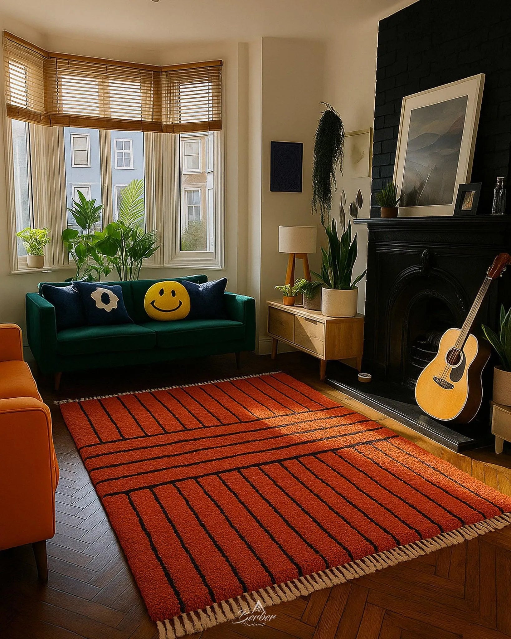 Orange and Black Berber Rug
