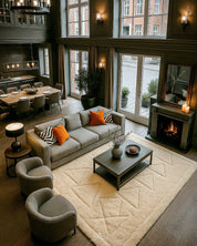 Imagine a rug that fuses old-world charm with modern grace. That's our soft Beni Ourain rug, a Berber masterpiece. Handmade from premium quality wool, its neutral shades feel like a soft cloud under your feet and blend smoothly with any style of home. The wool rug's design is simple yet mesmerizing, carrying an eternal attraction influenced by traditional Moroccan Beni Ourain motifs.