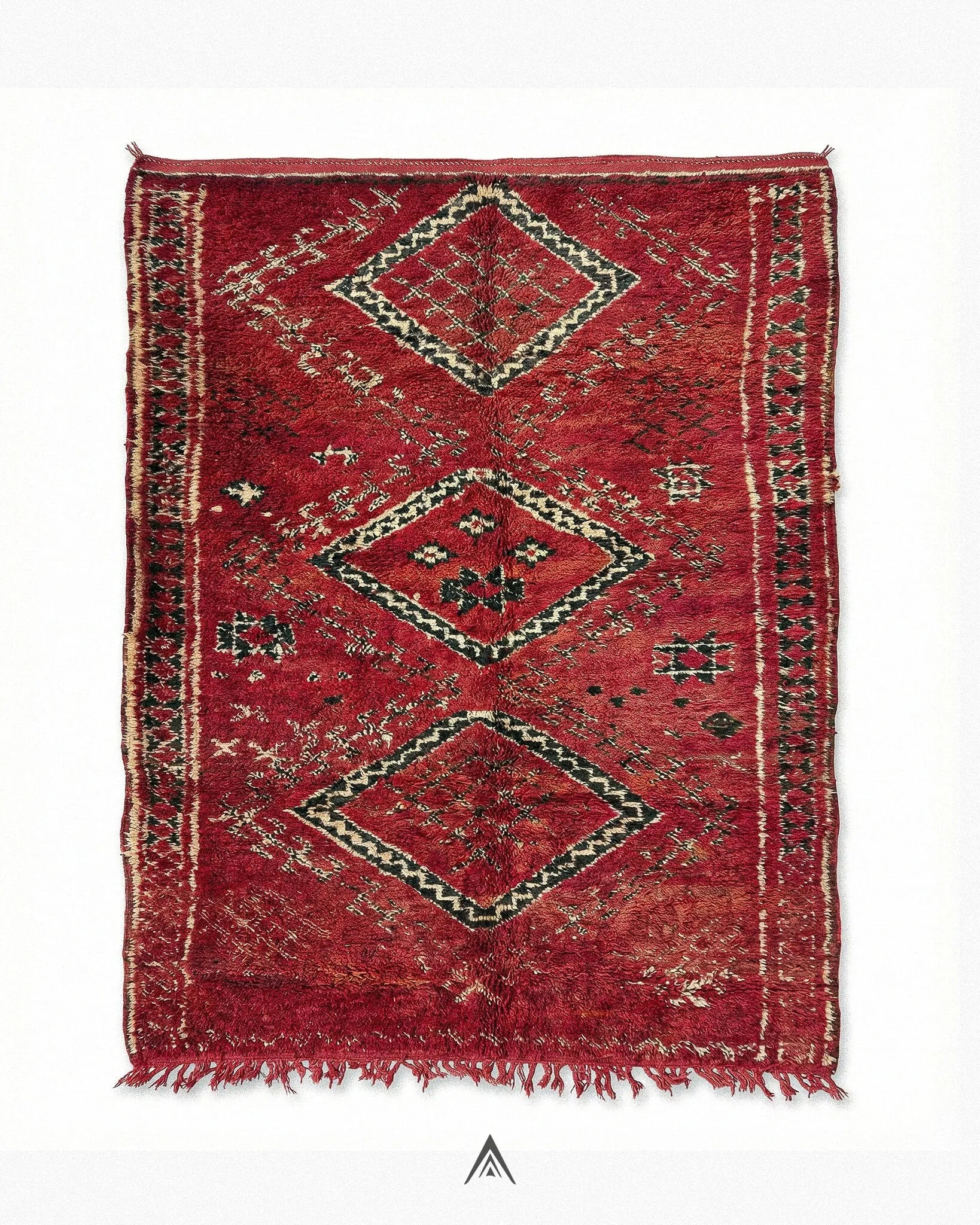 This rug is handmade with care and precision, knot by knot, using pure Atlas Mountain wool and organic dyes.